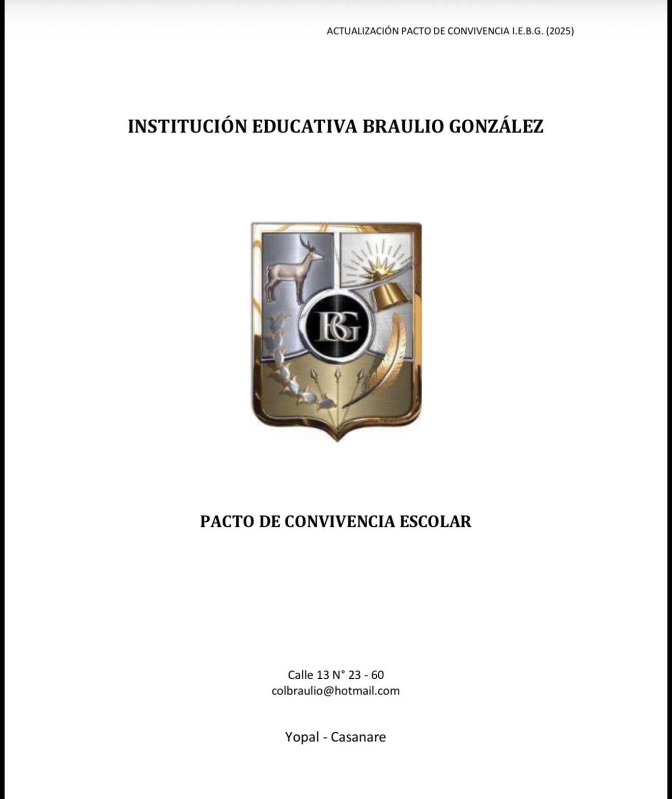 PACTO DE CONVIVENCIA ESCOLAR 2026 Categorías General Fecha 13 marzo, 2026 Documento 📃 PACTO-DE-CONVIVENCIA-Actualizado 16.07.2025 Compartir: BRAULIO GONZÁLEZ Publicación anterior RENDICIÓN DE CUENTAS 2025 13 marzo, 2026 También te puede interesar RENDICIÓN DE CUENTAS 2025 6 marzo, 2026 DOCUMENTO PROGRAMA DE RENDICION DE CUENTAS 20260224_11362605 CONVOCATORIAS DEPORTISTAS 2026 16 febrero, 2026 PROCESO D E PROMOCION ANTICIPADA 10 febrero, 2026
