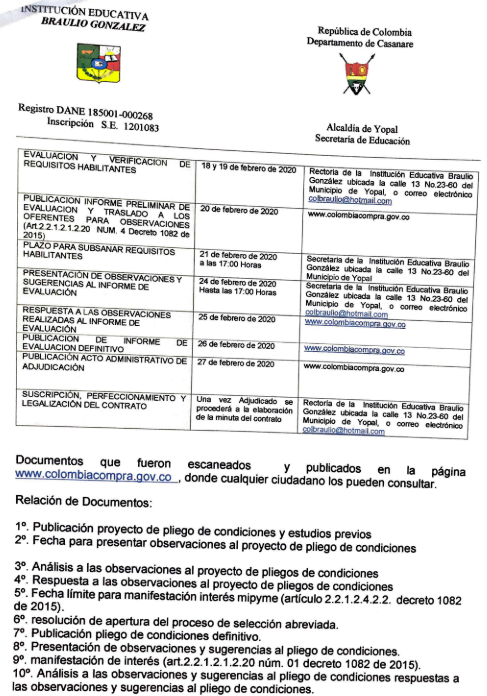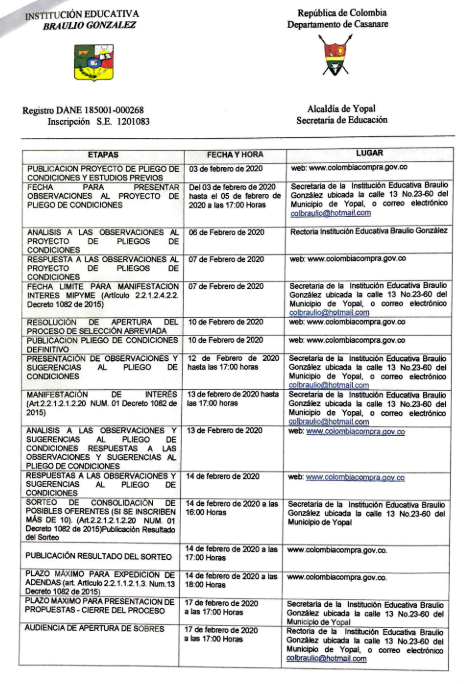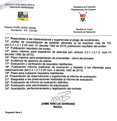 Institución Educativa Braulio González (I.E.B.G) a través de la resolución número