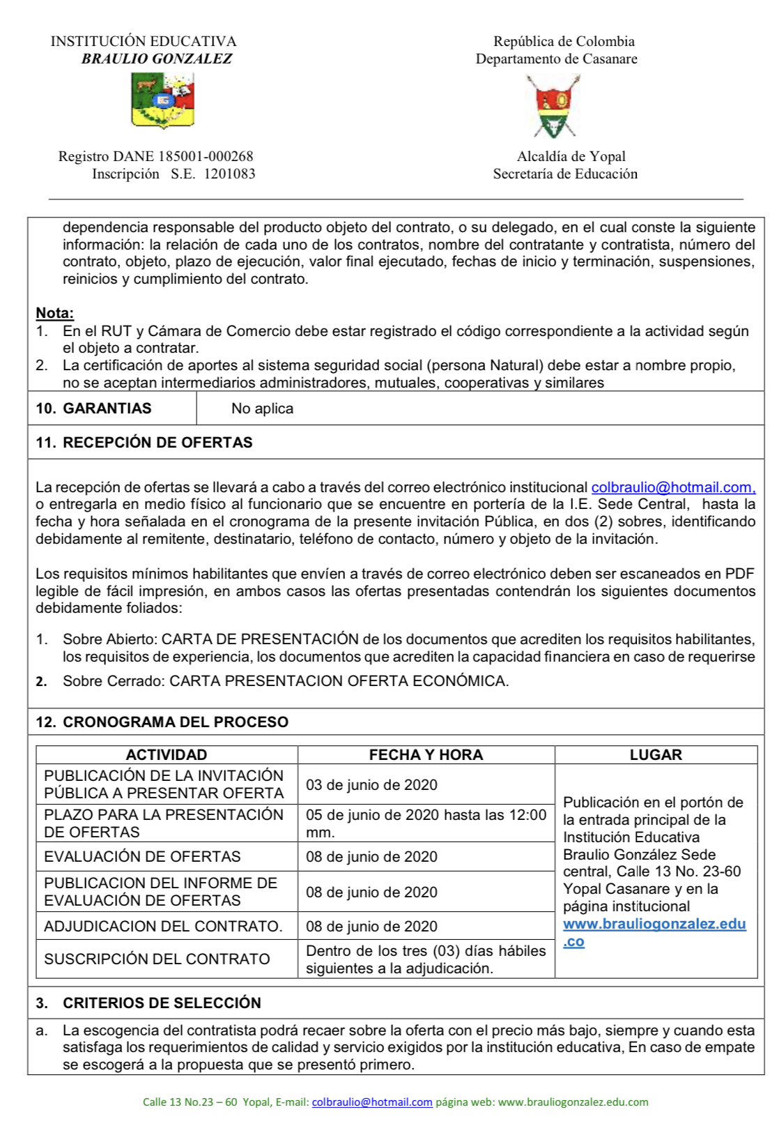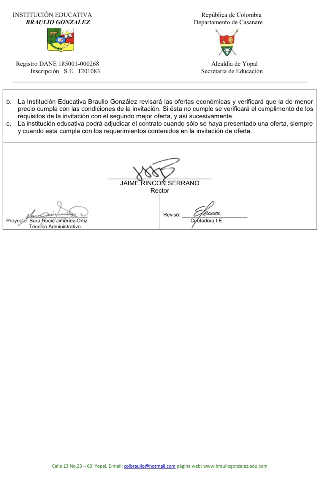 ADQUISICION DE ELEMENTOS DE PAPELERIA Y ESCRITORIO PARA USO DE LA INSTITUCION EDUCATIVA BRAULIO GONZALEZ DEL MUNICIPIO DE YOPAL