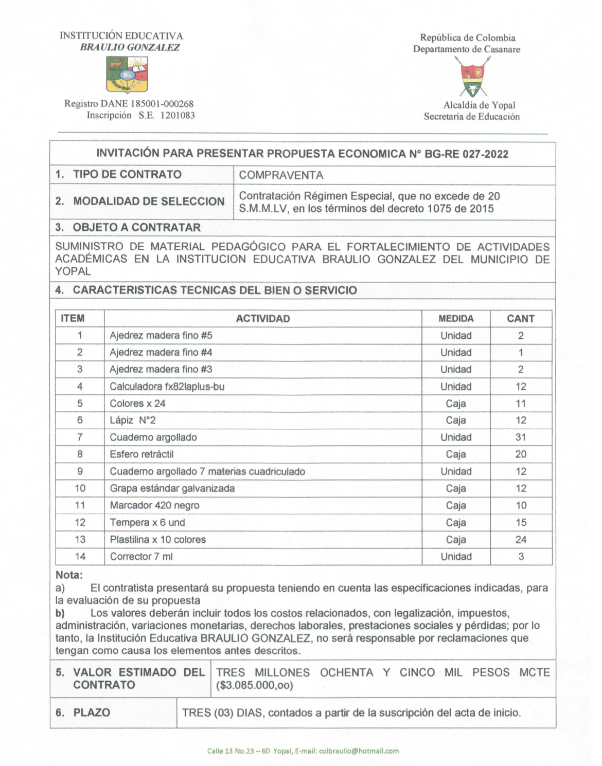 INVITACIÓN PARA PRESENTAR PROPUESTA ECONÓMICA N* 027-2022