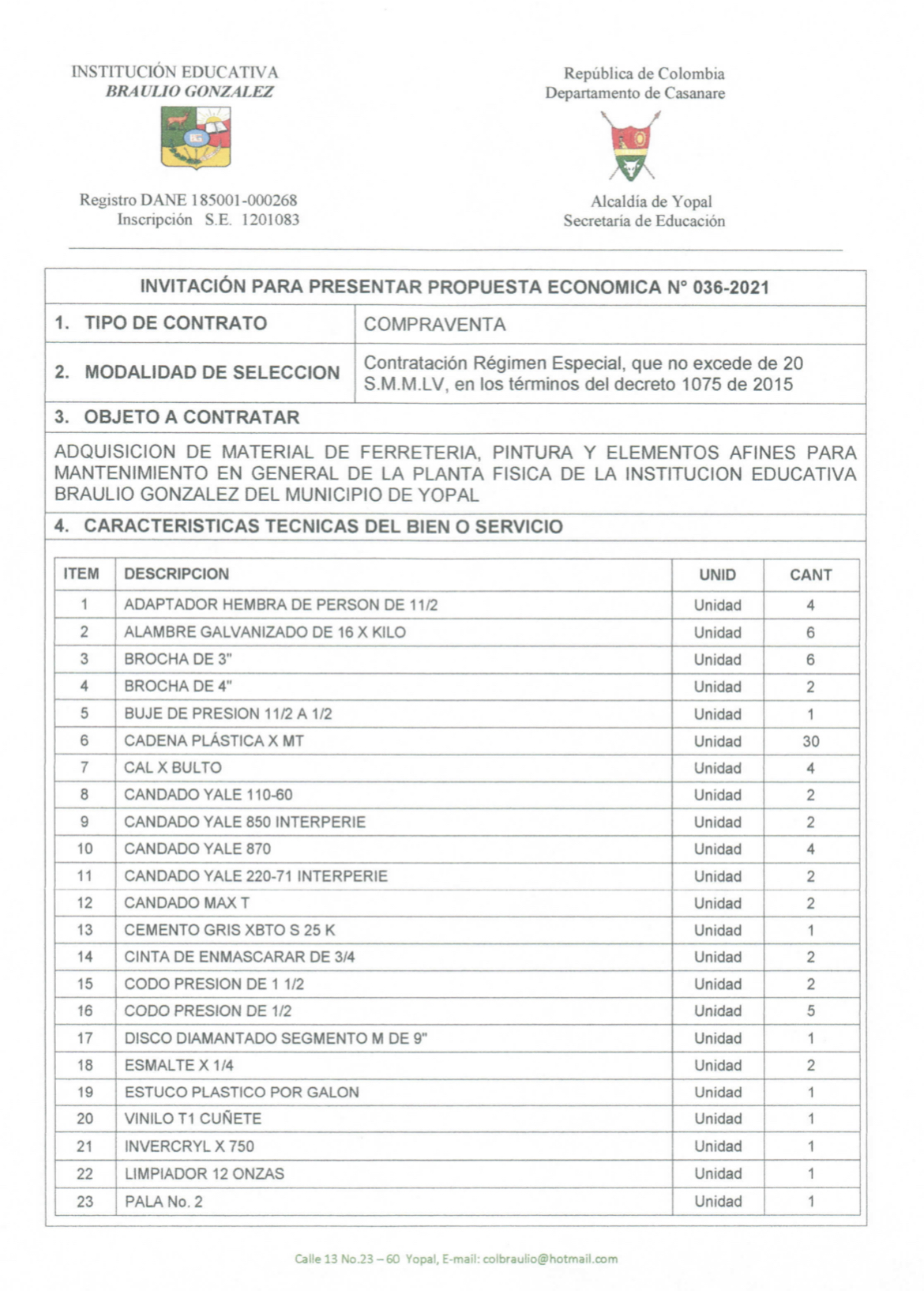 INVITACIÓN PARA PRESENTAR PROPUESTA ECONÓMICA N* 036-2021