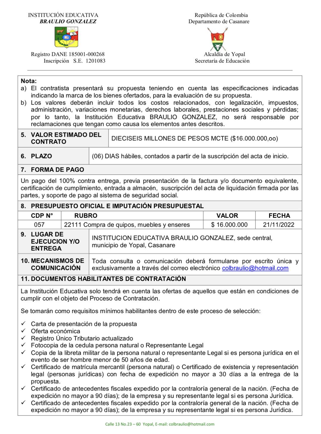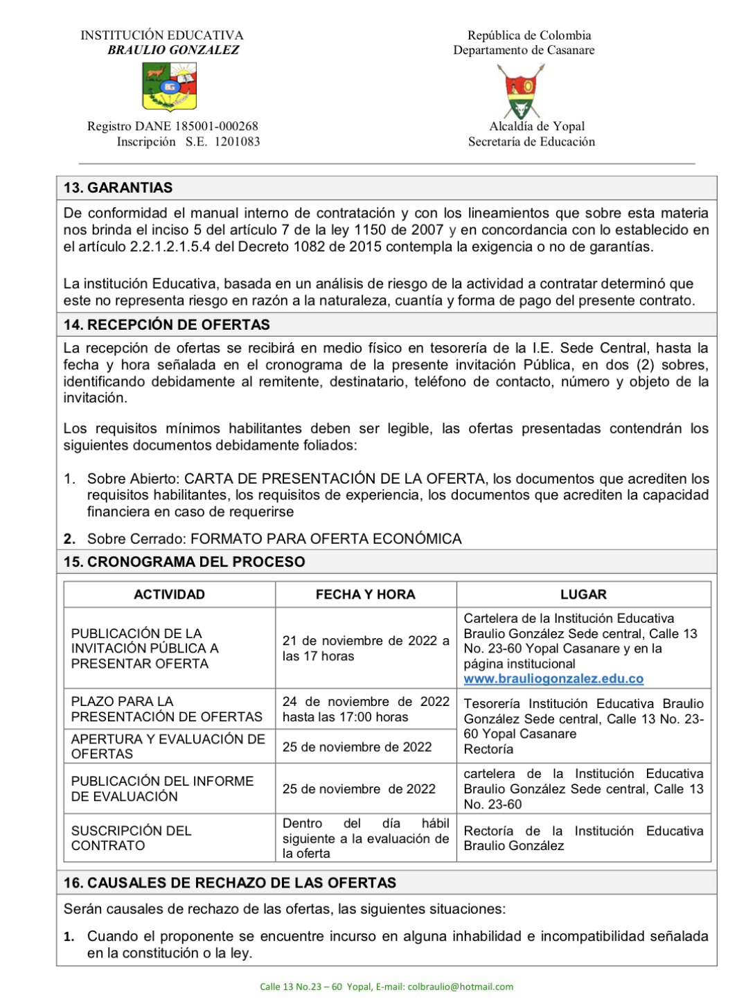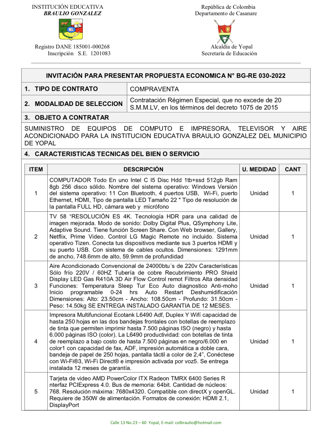 INVITACIÓN PARA PRESENTAR PROPUESTA ECONÓMICA N* BG-RE 030-2022
